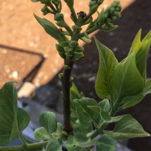 白いライラックの花芽が膨らんで来ました💕 ほとんど鳥❓についばまれていて、ダメかと思ってたので、凄く嬉しい🎶