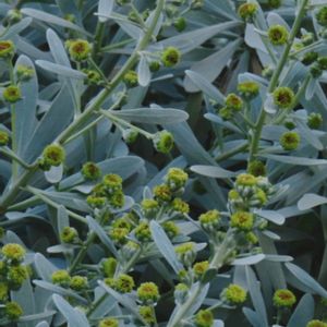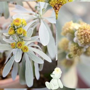 こんばんわ!🌃 シルバーリーフ🌿が素敵なモクビャッコウに初めて花🌼が咲きました! 花びらが無く菊の中心の🟡だけって感じの花です!😆