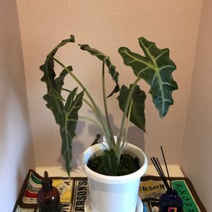 アローカシアだと思うのですが、昨日・今日と一枚ずつ変色していてどうしたらいいかわからないです(._.)日光の当たらないダイニングに置いていて土の表面は乾いてる感じですが、2〜3日前に下から水が滲み出るくらい水はあげました。少ないのでしょうか?