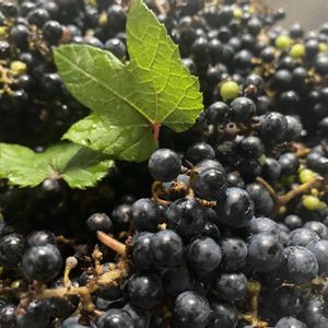 一粒落ちれば平地まで滑走するであろう坂の途中の野葡萄、豊作です ワイン🍷にできたらねぇ