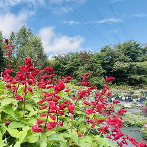 スーパーサルビア GOGO スカーレット❤️ 山の日 4年前の鳥海山⛰️