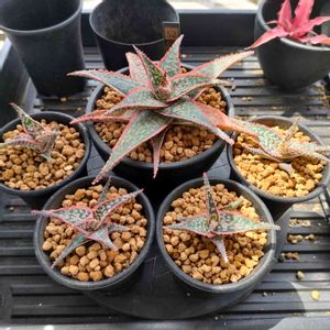 アロエ属 コーラルエッジ JAの多肉売り場で破格で購入。 ゴツゴツした質感と毒々しい色味。 アロエってかっこいいのに、あまり人気がないように感じるのはなぜでしょうか。 以下成長メモ ・幅15cm 高さ5cm ・子株4つ ・黒プラ鉢4号 ・赤玉土、日向土、ゴールデン培養土