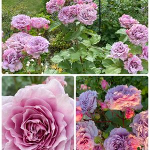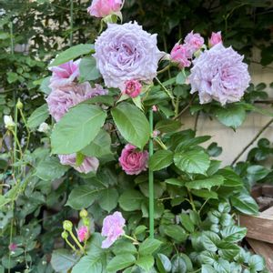 ロサオリエンティスのシャーウッド(1〜3枚目)、コリンクレイブン(4〜5枚目)です。 同じ藤色のバラですが少しニュアンスが違います。 シャーウッドは樹高がかなり低くコンパクトです。 一応茶バラの扱いなのですが中央は濃いアプリコット… 何とも形容し難い色です。 退色していくので一鉢で多彩なグラデーションになります。 コリンクレイブンは多花弁が非常に美しい薔薇なのですが、なかなかラベルのような花になりません。 今年で四年目… 曇天と夏日の繰り返しであっと言う間にボロボロに… それでも遠くから見れば存在感があるんですが本来の魅力を引き出せず悔しいです。