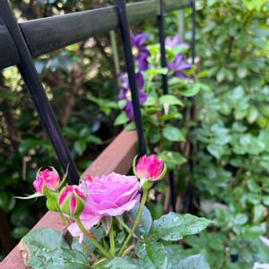 コリンクレイブン💜 🪲被害凄かったけど キレイな葉も出てきて元気に咲いてます♪ 🏷️水曜ローズショー