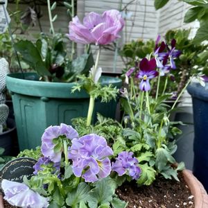 今日の寄せ植え 零れ種からのノースポールも 仲間に🌱 コリンクレィブンの蕾 🏷水曜ローズショー 🏷花咲く乙女たち♡ 🏷雲仲間 参加させていただきます パルムディレーヌ、アネモネ