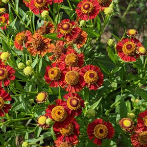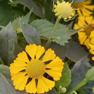 背高のっぽの茎の先に 何本もの枝分かれした花茎 咲き始めから少しずつの 色変化に 団子も色々🍡😅 団子菊(ヘレニウム)