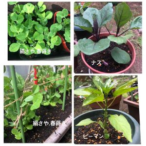 今季の野菜🥦🍆🍅🫑を先月から植えました。 GS友のお話参考に絹さやは種まきから挑戦して育てました☆ 絹さやは秋蒔きが主流ですが、春蒔きでも充分収穫ができる!と言う情報を見て思い切って先月巻いてみました(^o^) 初めての種まきからなので実がついてくれたら嬉しい☆ \(//∇//)\ ナス🍆ピーマン🫑は苗から植えましたが、ピーマン🫑早速、🌿葉っぱ虫に食べられてたので予防しました💦