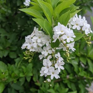 デュランタ(白) 藤色や白の小さい花が房状に垂れ下がって咲く観葉植物… 外出先の駅前の花壇で出逢いました。 私好みのお花で思わずパチリ📸😄