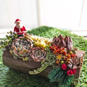 ブッシュドノエル鉢にクリスマス寄せ🎅