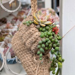 お友だちが麻ひもでブーツ鉢を編んでくれたよ💕 グリネといいカンジ💚