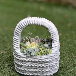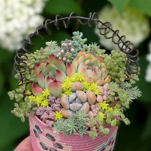 傘の形の鉢に寄せ植え💕 ぶら下げたいところたけど、 意外と重くなったから、 置いて飾りましょ。 それにしても、 今日の花粉はひどすぎたわ。 薬もマスクも意味無しってカンジ😂 この寄せ植えを作っただけで、 多肉事は終了〜💦
