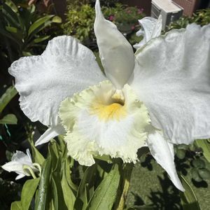 Den.Hawaiian King デンドロビウム ハワイアンキング👑 (Hawaiian Spectaclular✖️Formidible) ①2番花が咲き始めました🎶 この花茎は5輪花が付いてます 花径は9cmと大きめ☺️ 他にも蕾があるのでまだまだ楽しめそうです😊 ②全体像 葉っぱの穴はカネタタキに齧られた痕 ③畑の井戸と入道雲のコラボ (今日も畑の準備💦) まだまだ夏ですねー☀️☀️☀️
