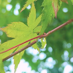 『翠雨』 植物を潤して 青もみじには翠色 オダマキのドレスには小さな真珠色 姫金魚草には桃色、杏色 それぞれに美しい雫を宿した 雨上がりの朝