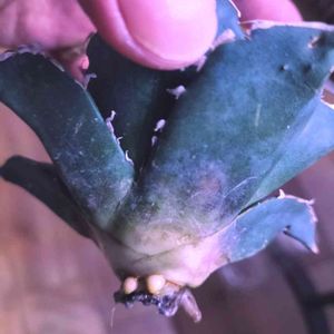 アガベ.チタノタ.ブラック&ブルーです😐😂 サビ病になってしまったので、葉っぱを2枚残して植え替えしました😓 1ヶ月してもシワにならないし動いているようなので一安心です😰