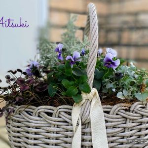 ビオラ 藍月 をお迎えして籠寄せを作りました🩵🍃🧺 好きな色を集めて作ったのでとても楽しかったです🤗💓 夕方のpicなのでよく見えないですね😅 明るい時に撮ってまた投稿します🤗 今日は山ガールで筑波山に登る予定でしたが、一昨日から膝が痛くてツアーをキャンセルしました🥲 残念だったけど籠寄せを作ったので気分転換できました♡^ ^♡♪