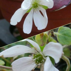 山野草「雪割草」 うっかり見過ごしいつの間にか咲いていた。 たった二輪の咲き終わりそうな可憐なお花❃