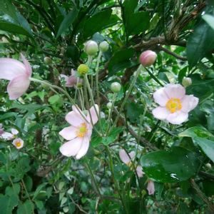 「シュウメイギク」 🌸山野草🌸 昨日の強風でぐったりしました。 日当たりが悪く色も薄いですが無事開花しました🌸