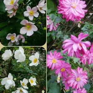 今日のお花「シュウメイギク」 今朝のお庭で📸 三種のシュウメイギクが咲いていて明るい感じです。