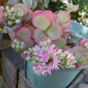 「ミセバヤ」 9月22日投稿の蕾がやっと開き始めました。 ピンク色の小さなお花の集まりが可愛らしい🌼.*