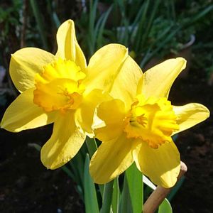 実家から連れてきた大きなラッパスイセン✨ 朝日を浴びて仲良く咲いています(^-^)v😃✨