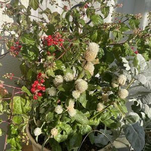 ジュズサンゴの赤い実が沢山ついてきました🔴✨ センニチコウの白い花といい感じ〜☺️