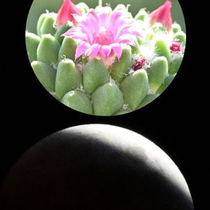 今朝咲いたサボテン「星月夜」💕 先ほど撮った皆既月食前の夜空に浮かべてみました🌒✨