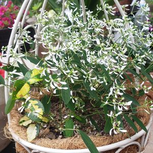 あっこさんちの スーパートレニアセレクション!? 宙ずりトレニア ミックスのバスケット さしめだらけの、涼し気な壁掛けさん あめにあたれば、ホウキとちりとりもっては、ながめては、テンション上げてます