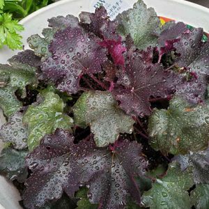 雨も、降ってないけど、スプレーで、遊んでみました。良い感じよねー この、シックな感じ、素敵よね 来春は、ユリの芽が、ニョキニョキーっと、なるはずです。 株元を、覆うにも、優れものの、ヒューケラさまです