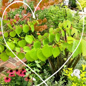 ハート型の葉っぱがかわいい桂の木ですが…👀よ〜く見ると緑と赤の葉っぱが混在してる!?💚❤️1本の木でも起こる現象かしら?🤔木の事はまだまだ知らない事ばかりです😟💦