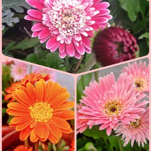 今日のお花✺ガーベラ😊今庭に咲いている3色です💞レッドは地植えで3年目✨下の2つは鉢植えで今年冬越しに成功しました🙌ガーベラの中でもガルビネアは強くて花持ちも良いです👍今日も良い1日をお過ごし下さい🐼🌼