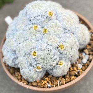 ボカサナの綴化は毛のない緑のフレッドが有名で、ネットだとそれしかないような扱いになってます。だけどこれも綴化状態らしいです。不思議ですね、本当にサボテン面白いな🤣そんなわけで購入へ。 マミラリアは花が可愛いくて好きなのだけど、つい最近花は咲きおわったばかりらしい、残念😢 来年に期待しますか🥳 店主に綴化してるって言われたけど、やっぱり群生してるだけに見えるんだよなあ、うーんわからん🤔