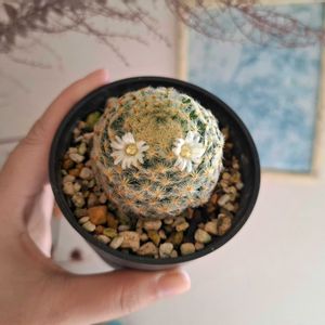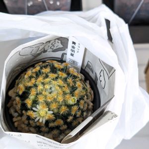 マミラリア 雪白丸。 何気に見かけることが少ない印象なので、見つけたからお迎えしてきちゃいました。 スッカスカだなぁ😂 お日様にガンガン当てたら陽光に負けそうなスカスカ具合😅 既に径5cm前後の結構育ってる子なんだけど、絞ったら白マミらしくなるかなぁ。 白マミ好きです。 赤やピンクの花も良いですが、雪白系統の淡い色合いのピンクの花がとても好き😊 来年の春、満月達と並べて花を愛でるのが楽しみです♪