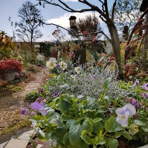おしゃれビオラ 「JOY」 株分けした黒竜を足して🌿 春の寄植え解体が、めんどうなアタシσ(・・*) お一人さま植えばかりだわ~🤣