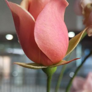 通勤帰り、街灯りでパチリ!📸 チューリップのような「バラ」の蕾です。🌷🤗😄🌆🌃🌌🌿