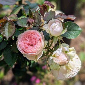 ステキなな品の好い 薔薇が うちにやって来ました 名前は、パシュミナ いちばん日当たりのよい、風通しのよい場所に地植えしました 頂いたときから 小さな蕾が付いていたと思われ 花が直ぐに咲きました 薔薇の様子から 大切に育てていたんだな〜って思われ すご〜く嬉しくて まだまたま、蕾がいっばい 教えてもらった 虫病気に効くスプレーをまいたり 肥料をあげたり ありがとう 楽しみがふえたよ 花びらの裏側の少しグリーンがかってるところとかも好き
