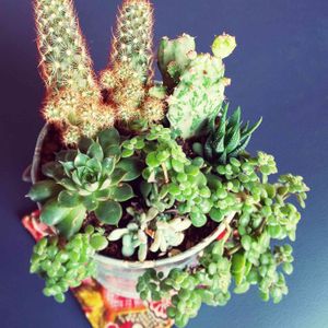 おはようございます❣️ 🏷️3月10日は、🌵サボテン🌵の日🏷️ に参加します💜 🌵サボテンの寄せ植え🌵 冬場は、あんまり変わってないような気がするけど、右側はかなり元気がなくなっているかなぁ~⁉️ 暖かく太陽いっぱいに浴びて元気になってね❣️