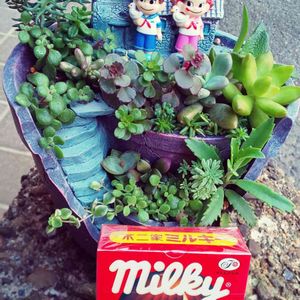 こんにちは❣️ 🏷️ペコちゃん祭り🏷️ に参加します💜 🌱寄せ植え🌱 ポコちゃん&ペコちゃん 仲良く参加❣️