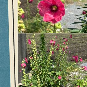 おはようございます🌅😊 晴れて蒸し暑い朝です💦 ✨今日のお花✨🌸タチアオイ🌸です😆👍🌸🌸💚💚🩷🩷 撮り忘れていたので、急いで撮りました👍 もうほとんどのタチアオイは終わっていましたが、なんとかお出かけ先で少しだけ咲いているのを見つけて、撮影しました😅👍💦 可愛らしいです🥰🌸🌸✨✨