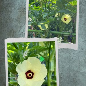 おはようございます🌅😊 曇り空の蒸し暑い朝です💦 ✨今日のお花✨💛💚オクラ💚💛です😆👍🌸🥬 お隣さんのお家の庭でお花が咲いていました😆👍💚💚🌸🌸 可愛らしいお花です🌸🌸 オクラ、お花も綺麗で可愛らしいですし、食べても美味しいので大好きです🥰😋💕 あのネバネバがまた良いですね😋💕