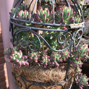 ルビーネックレス、エケベリア、ケイリドプシスプルプレアとかを鳥カゴに入れてみました。 上手く育ってくれますように✨
