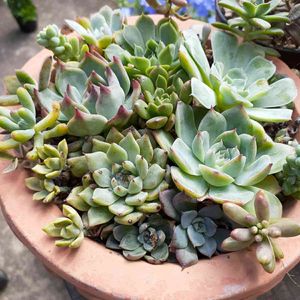 夏越しを何とか耐えてくれた寄せ植え 🌿🌿🌿‼️ 最近、朝晩の気温が下がり、多肉の表情にも、変化がある気がするな〜 (๑σωσ๑)♡