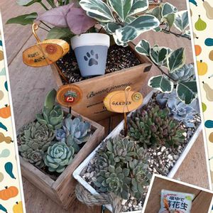 ソクモン祭りに…🐒🎶‼️ haru.kちゃん作のリメ缶寄せ植えが、とっても可愛いくなってきました💓💞 右下の寄せ植えは、シエラちゃんから貰った子ばかりで寄せ植え🌿🌿🌿‼️ しっかり根付いて、もりもり成長中‼️ ソクニャンは、私作…🐱🧦‼️ 新しい子作りたかったけど、⏰( ˙ꈊ˙ ⏰)足りず( ̄▽ ̄;)…
