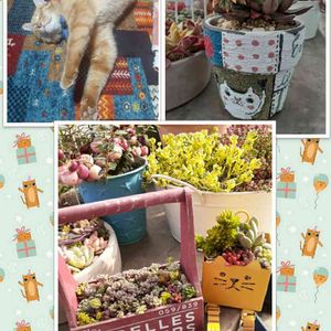 peanyatsの日に…🐱‼️ haru.kちゃんのお店で、peanyats鉢を買えました👛😁‼️ 中々抽選当たらないのに、今回あさみーずさんの、ポストカード当たった私…😁 とっても可愛いです🥰 可愛い鉢には、やっぱり寄せ植えしたくなりますね😁🌿🌿🌿