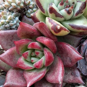 I loveはちゅの日に…🦎😁 真ん中のカメレオン錦…この時期のこの色がとっても可愛くて🥰 右の小人の祭りも、元気です😊👍 編み編み🦎が乗ってるのは、バースト3姉妹のサンバースト… 去年の寒波でだいぶ弱ったけど、何とか見れる姿になりました😁👍 👶ちゃんも知らぬ間に…(๑′ฅฅ‵๑)ウフフ
