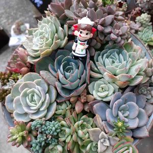 ペコちゃん祭りに…😊🎶‼️ ぎゅうぎゅうになって可愛くなった寄せ植え😍🌿🌿🌿‼️ この鉢脚付きで、何度もびっくり返してその都度、植え替えしてました😅 ドジな私の一面です😅