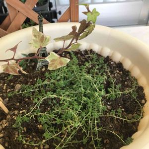 グリネさん、大きめプランターに植え替えました〜✨これで根が出ても、根付いてチョッキンしちゃえば簡単に分けられる♡うまくいきますように。。。 お隣にはミントとローズマリーの挿し木。
