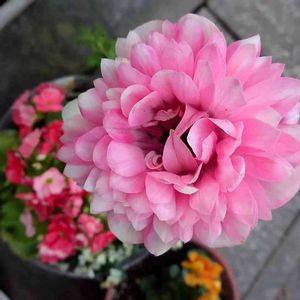 1月19日にアップpicあとの開花 <アネモネ ポルトダブルピーチ> とても鮮やかなサーモンピンク 濃いピンク…だったの 2つ目の蕾( ゚ 3゚)?アレ?色が薄い気がしてた。。今朝咲いた姿がちがう色、予感的中🎯。 初めて育てたアネモネ…不思議