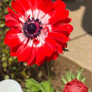 ❥❥٩(๑❛ᴗ❛๑)۶❥・• *゚*. こんにちゎ .✲゚* 何色が咲くか 分からない苗を お迎えした 『アネモネ ポルト✨』 真っ赤な お花が咲きました👀✨ 自分では 絶対 選ばない色なので なんだか新鮮です✨ パワー✨が溢れていたので✨ お花パワー✨と癒やし❤を皆様に🤗♥ あなたに届け〜❤⸜(*ˊᗜˋ*)⸝❤