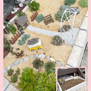 前picしたDIY多肉用花壇 途中経過☝️全然進んでない😅 可愛らしい小さなお庭🏡風にしたくて、ちまちまやってます✊ 思ったり、時間がめちゃくちゃかかる😓 セダム系も全然足りない😓 でも楽しい( ˆОˆ )♪