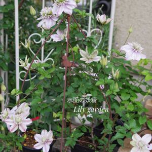 水面の妖精が我が家にて初開花しました♪ クレマチス育てるのは苦手なのですが、この子はしっかり咲いてくれました✨おしゃれなお花だなぁと思いました♪